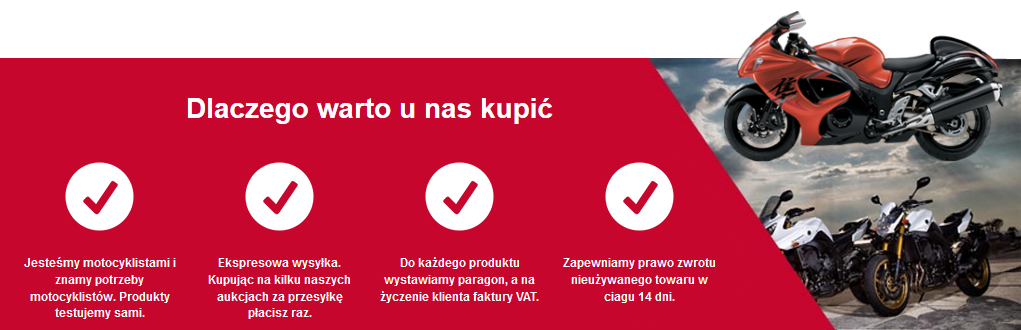 Jesteśmy motocyklistami z wyboru, pasji i zamiłowania. Znamy potrzeby motocyklistów i wychodzimy im naprzeciw.